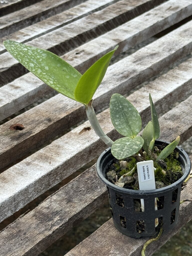 Os espécimes, identificados pelo código K02, são resultado do nosso cruzamento realizado no inverno/primavera de 2021 em Venda Nova do Imigrante – ES, cultivada em vaso furado (8cm de altura, 10cm de base superior e 8cm de base inferior), estima-se a previsão de floração a partir das próximas duas brotações (até 2 anos).